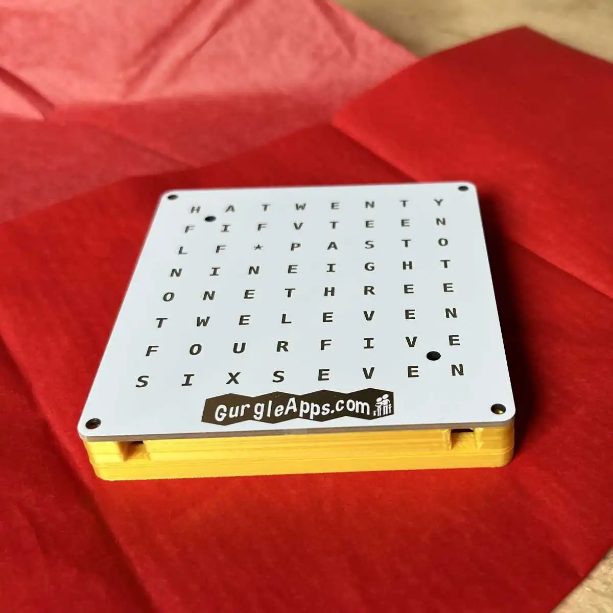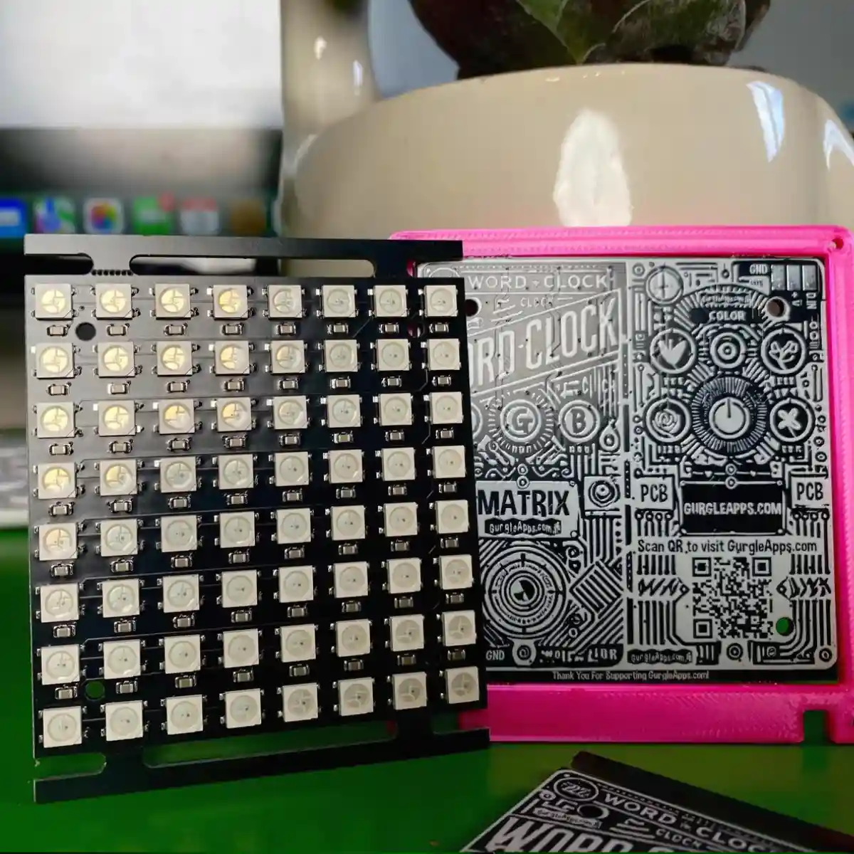 A modern WiFi word clock kit—build it yourself and watch time light up in words.